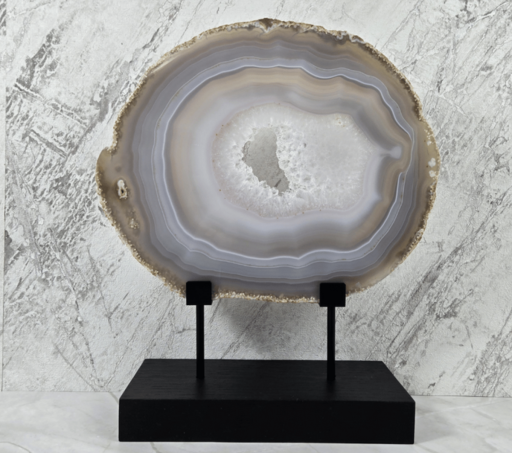 Voor wie op zoek is naar een groter, meer opvallend stuk, is de agaatschijf op standaard een uitstekende keuze. Deze schijven zijn de perfecte manier om de schoonheid van agaat in zijn volledige glorie te tonen. Met een formaat dat variëert van medium tot groot, kunnen agaatschijven dienen als een indrukwekkend middelpunt in een kamer.